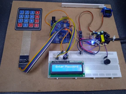 A 16×2 LCD display is used to provide user feedback, displaying authentication messages.