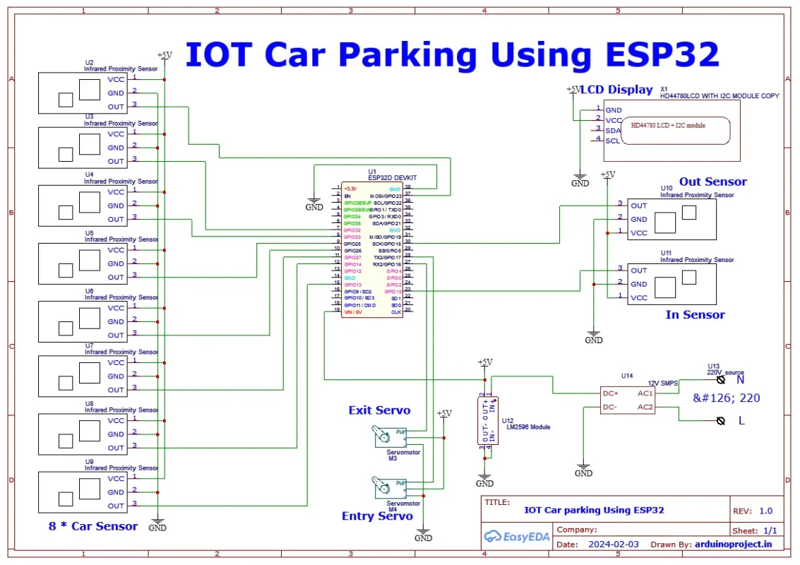 I’d be glad to help you create an IoT car parking system using an ESP32 Wi-Fi module, IR sensors, servo motors, and an LCD. Here’s a comprehensive guide that incorporates the best aspects of various approaches and addresses potential issues: