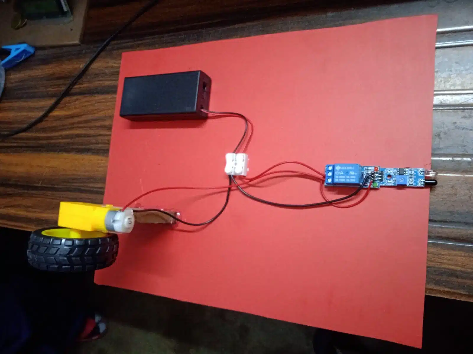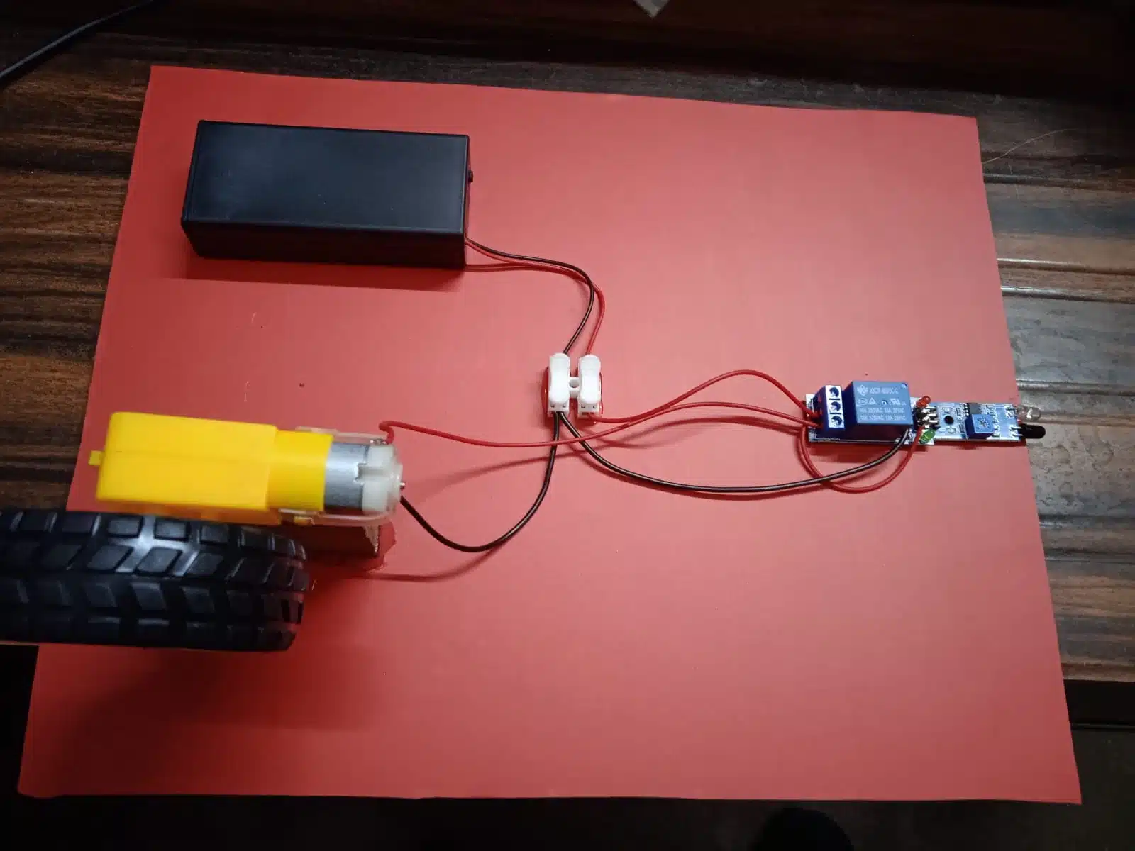 - Relay Module: The relay module is responsible for controlling the motor. When it receives the logic low signal from the IR sensor, it activates to cut off the motor’s power.