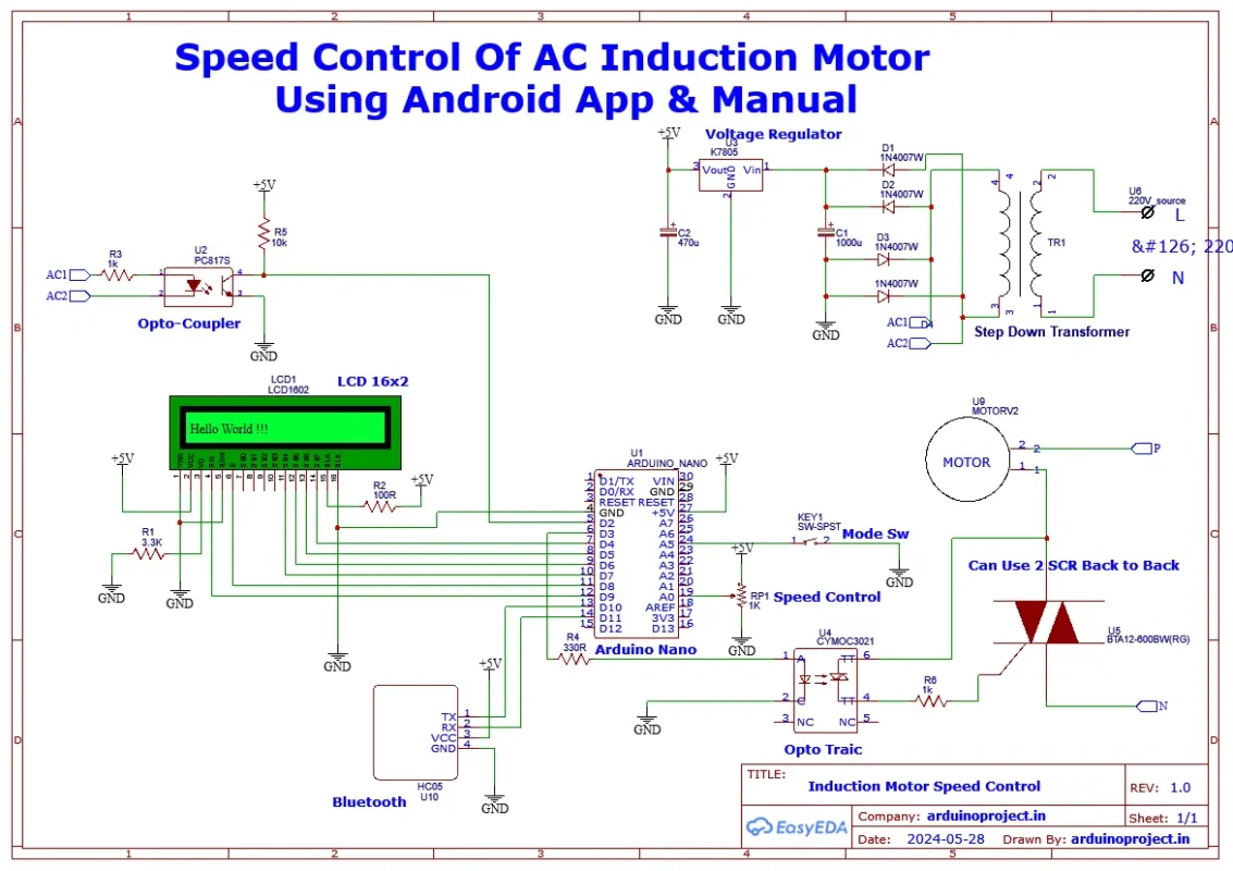 Home Arduino Projects Induction Motor Speed Controller with Manual & Android Interfaced