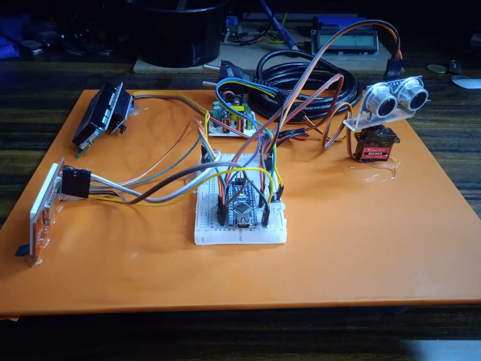 The Arduino microcontroller serves as the brain of the system, processing input signals from the ultrasonic sensor and controlling the servo motor and display modules.