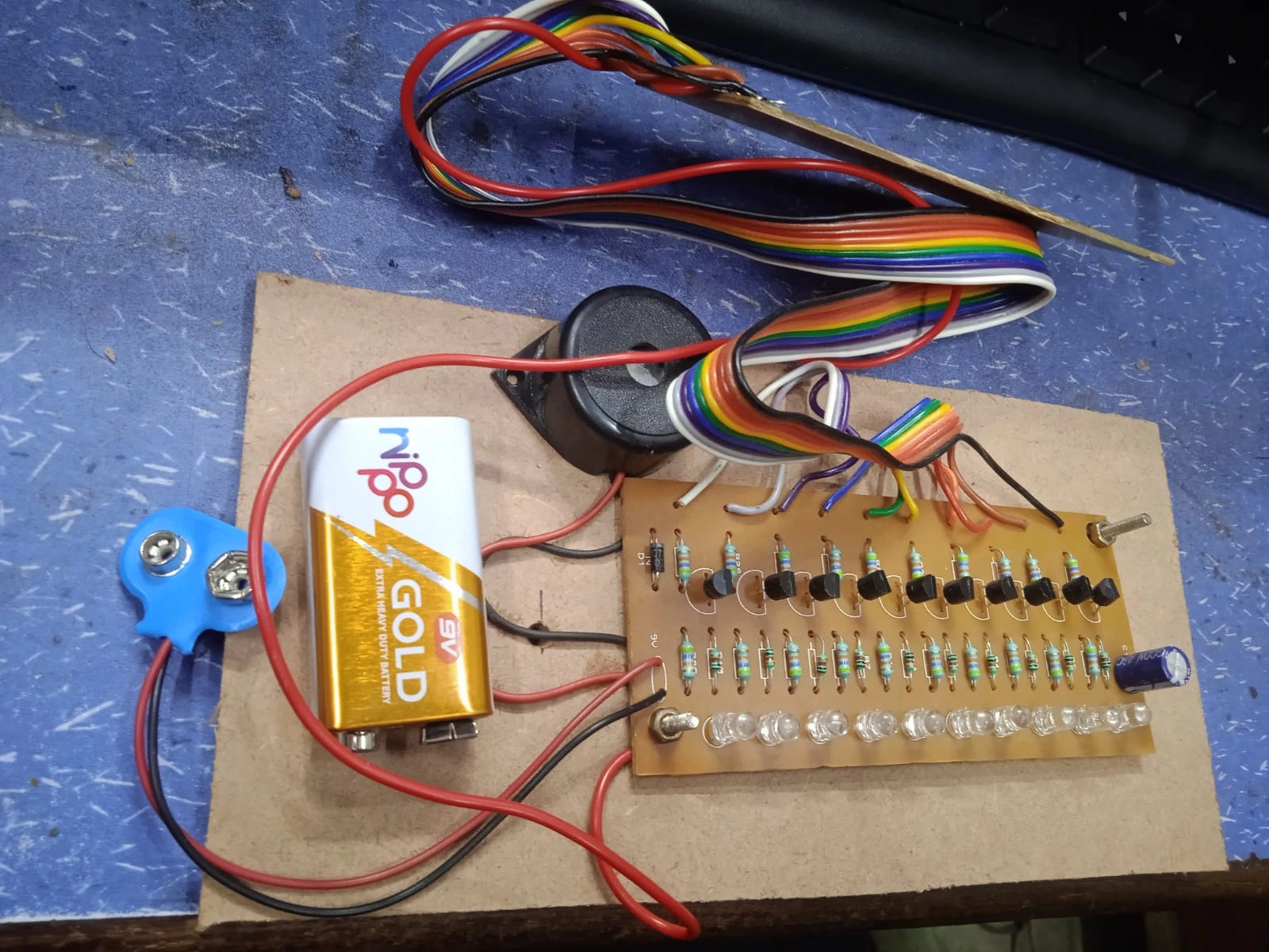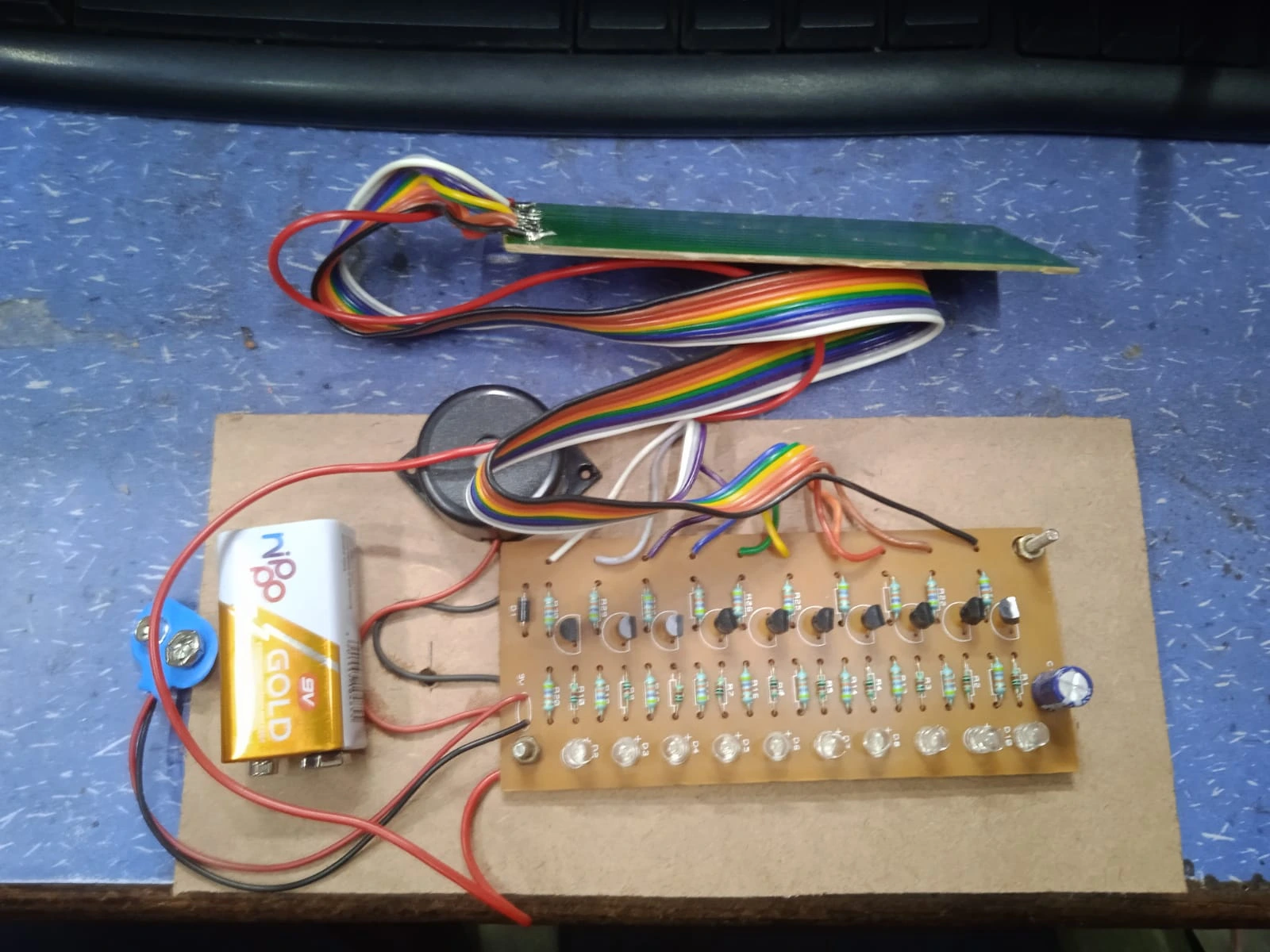 Here’s a detailed explanation of the working principle of a Water Level Indicator with buzzer for 10 levels using PNP transistors and LEDs:
